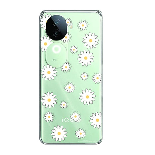 White Flowers - Clear Printed Silicone Case For iQOO Models