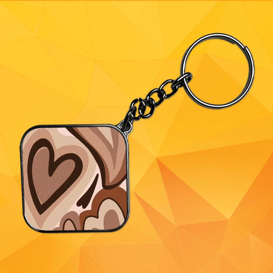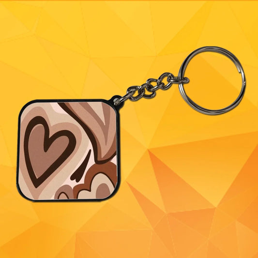 Brown Hearts - Keychain With Black Border (Pack Of 2)