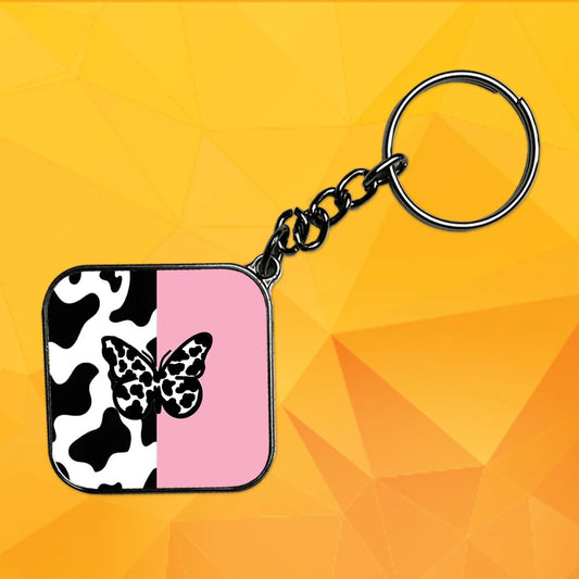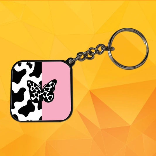 Cow Print Butterfly - Keychain With Black Border (Pack Of 2)