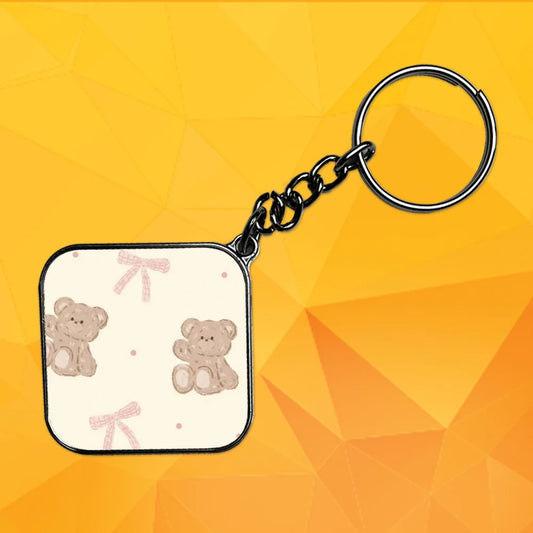 Cute Bear - Keychain With Silver Border (Pack Of 2)