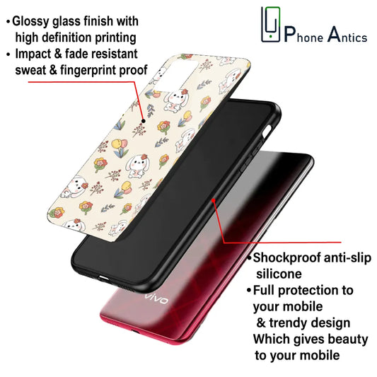 Cute Bunny & Flowers - Glass Cases For Apple iPhone Models