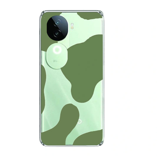 Olive Green Cow Print - Clear Printed Silicone Case For iQOO Models