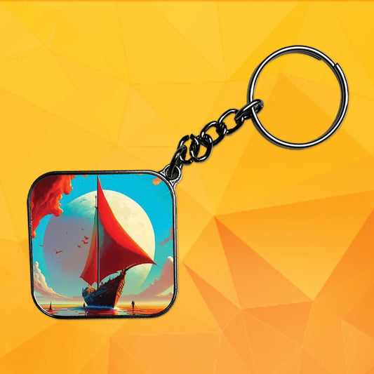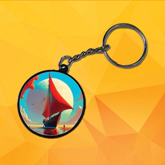 Orange Ship - Keychain With Silver Border (Pack Of 2)