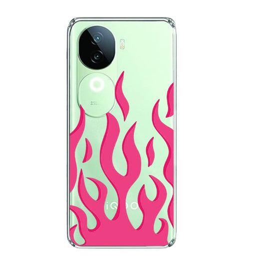 Pink Flames - Clear Printed Silicone Case For iQOO Models