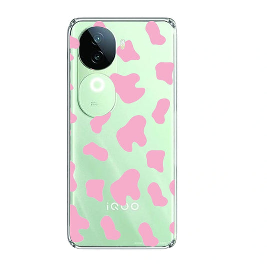 Pink Cow Print - Clear Printed Silicone Case For iQOO Models