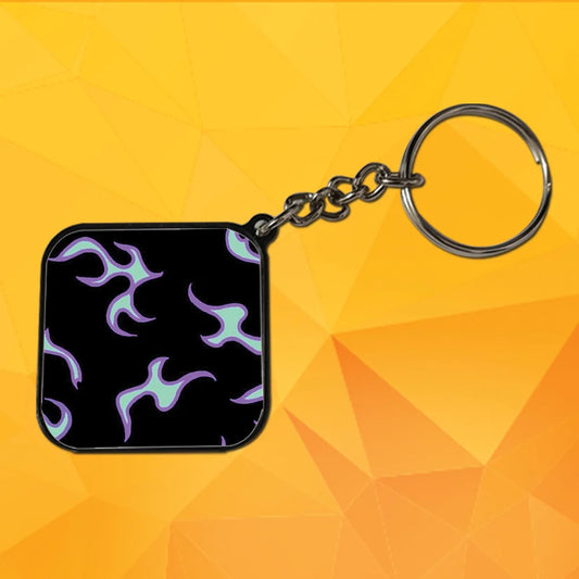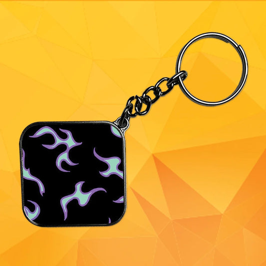Purple Neon Flames - Keychain With Black Border (Pack Of 2)