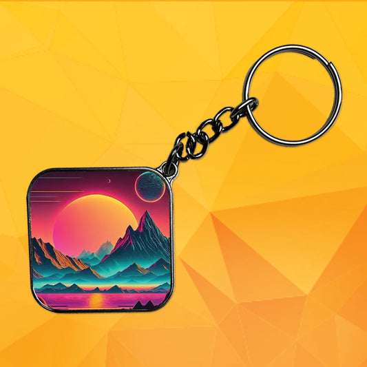 Sunset At The Mountains - Keychain With Black Border (Pack Of 2)