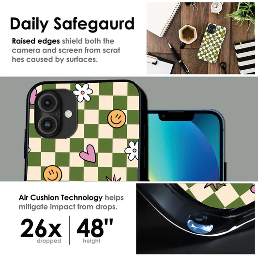 Checkerboard Smile Daisy Heart - Glossy Metal Silicone Case For Apple iPhone Models