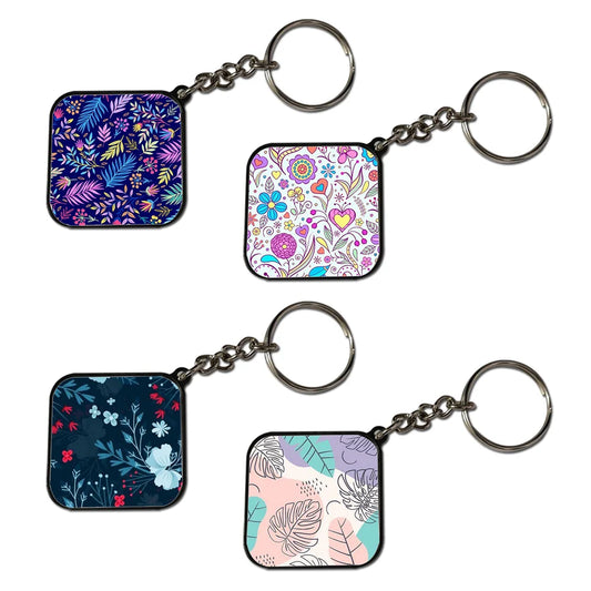Floral - A Combo Of 4 Black Border Keychains