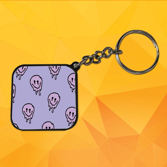 Abstract Yellow Smile Faces on Black - Keychain With Silver Border (Pack Of 2)