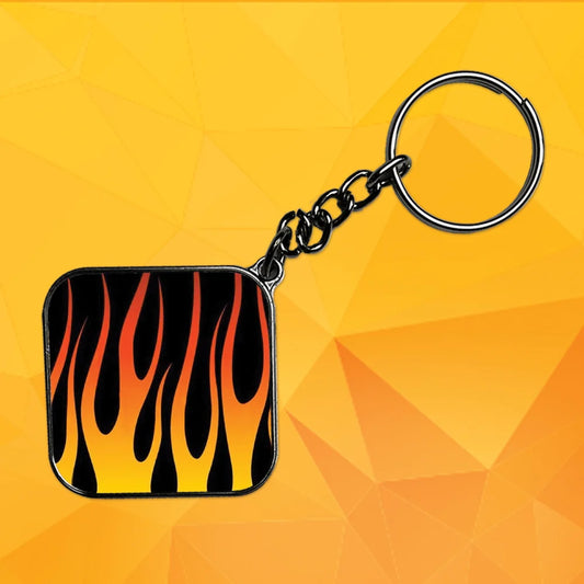 Purple Neon Flames - Keychain With Silver Border (Pack Of 2)