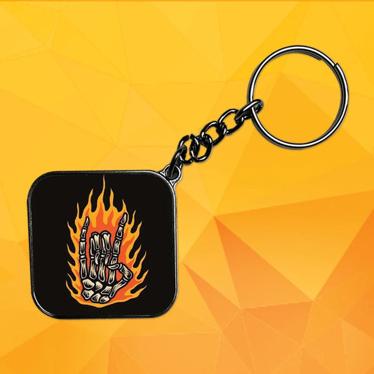 Rockstar Skeleton - Keychain With Silver Border (Pack Of 2)