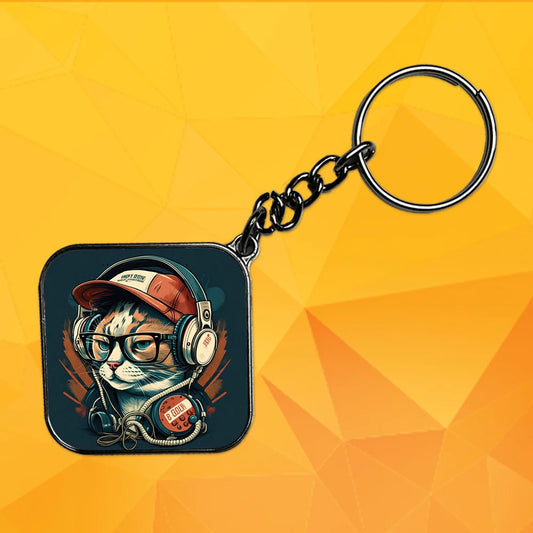 Cat DJ - Keychain With Silver Border (Pack Of 2)