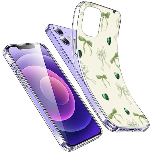 Elegant Green Bow & Heart Pattern - Printed Silicone Case For Apple iPhone Models