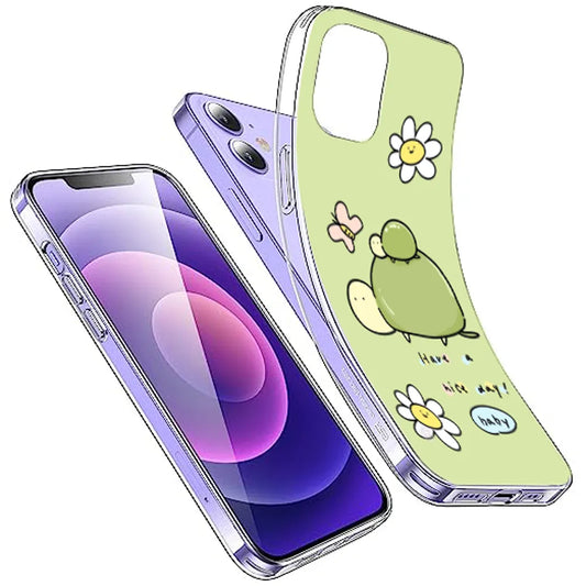 Cute Turtle & Daisy “Have a Nice Day” - Printed Silicone Case For Apple iPhone Models