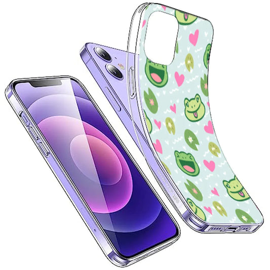 Cute Frog & Heart Pattern - Printed Silicone Case For Apple iPhone Models