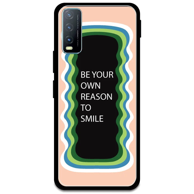 'Be Your Own Reason To Smile' - Peach Glossy Metal Silicone Case For Vivo Models
