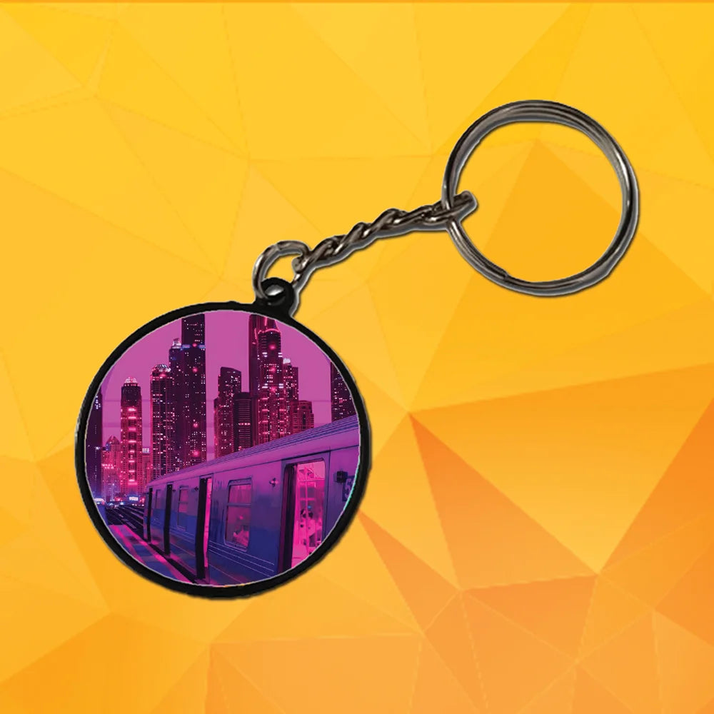 Synthwave City - A Combo Of 4 Black Border Keychains